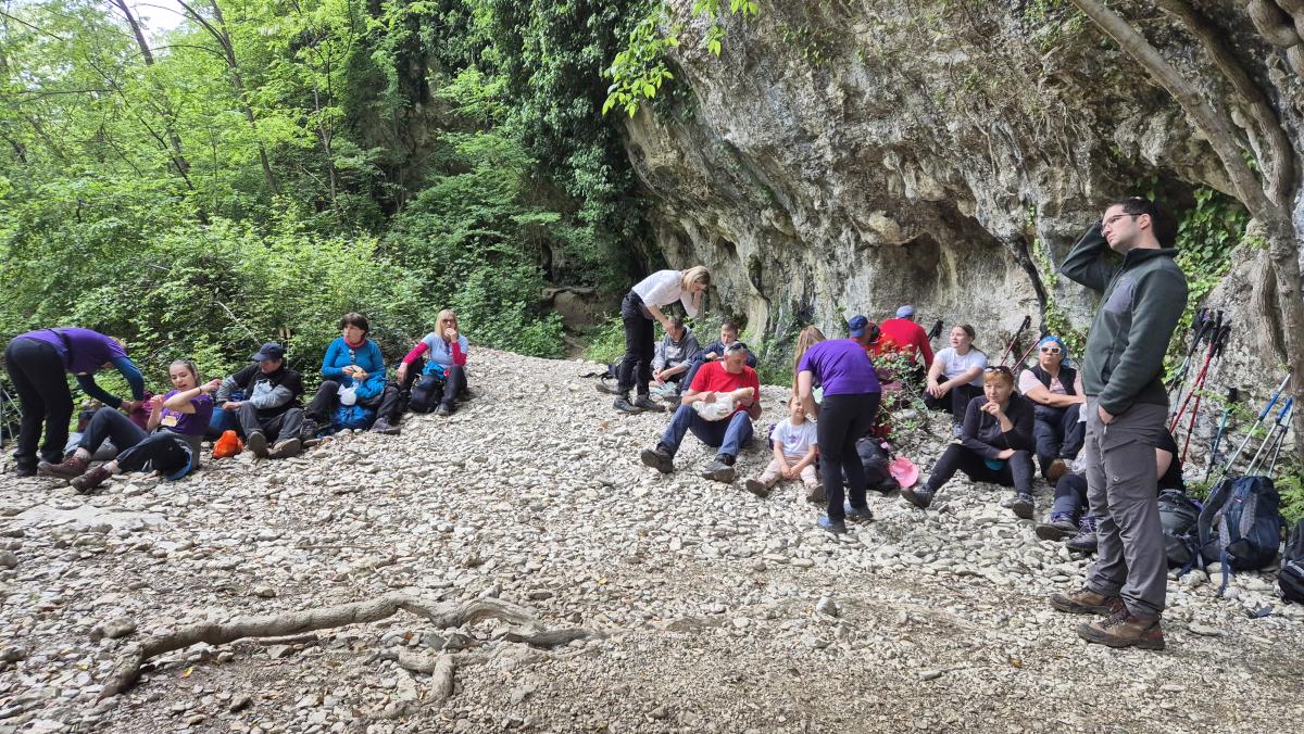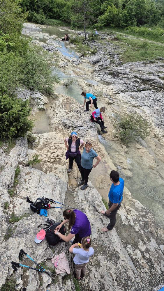 U subotnje jutro obradovali su nas sunce i ugodnih 13 C , pa nakon kave vozimo se do Buzetske pivovare gdje je početak , a ujedno i kraj Staze sedam slapova jer ovo je kružna staza. Nakon što nas je „postrojio“ naš vodič Šime krećemo laganini s lijeve strane rijeke Mirne i ubrzo nakon što se prođe trim staza i Komarov most preko rječice Drage gdje pada zajednička fotka, kroz šumu stižemo do prvog slapa Zagona koji je visok 5 m. Ubrzo slijedi i drugi slap Bačva visok gotovo 9 m u blizini kojeg je i popularno penjalište , a nailazimo i na rudarsko okno gdje se nekad vadio kameni ugljen. Vrlo blizu je i najveći slap Vela peć visok čak 26,5 m. A poprilično se i nagužvalo na stazi, ispred nas je grupa od 50 ak planinara pa valja pričekati osobito kod najzahtjevnijeg dijela staze uspona uz stijenu Greben. To je ujedno prvi i zadnji strmi uspon na ovoj stazi potpomognut sajlama i dijelom metalnim klinovima. Kamenje je zbog noćašnje kiše jako sklisko , pa uz pažnju i koncentraciju te pomoć Šime, Zvone i Tonča svi do vrha dolazimo bez problema. Obavezno fotkanje s pogledom na dolinu odakle smo krenuli. Put dalje kroz šumu vodi do četvrtog slapa Mala peć. Za doći do njega treba malo skrenuti s glavne staze. Ispred slapa formiralo se slikovito jezerce i tu radimo prvu pauzu za malo prezalogajiti i napraviti koju fotografiju. Nakon uživanja kod Male peći vraćamo se natrag na glavnu stazu koja postaje sve više blatnjava, sve više je i planinara u oba pravca. Željno iščekujemo putokaz na kojem piše Kotle i selo Kuhari. Prije najveće atrakcije ove staze, sela Kotli u kojem se nalazi peti slap ,Šime nas malo ubija u pojam- valja nam prohodati još ovoliko koliko smo prošli.Tek smo na trećini staze. I bila bi to gotovo šetnja jer nema uspona ni silazaka, da nije bilo mora blata što su ga stvorile obilne kiše prethodnih dana. Usporilo nas je, bilo je i proklizavanja i padova na stražnjicu ali nam nije umanjilo doživljaj i ljepotu nevjerojatnih oblika korita, brzaka, slapova i jezerca. Peti slap Kotli najpoznatija su turistička atrakcija u unutrašnjosti Istre. Voda je ovdje stvorila „kotle“, fascinantne udubine u stijenama. Tu smo napravili nešto duži predah i popili kavu u najneobičnijem kafiću na kotačima. I oprali u kotlima blatnjave cipele, neki su zagazili i previše pa su nastavak puta prošli s najlon vrećicama preko čarapa u mokrim cipelama. Od Kotla vodio je ne zahtjevan ali i dalje blatnjav put do dva zadnja slapa , šestog slapa Zelenšćak gdje hodamo po krovu vodopada i sedmog slapa Grjok. Oba su visoka 8 m i ispred njih je jezero. Nakon njih čekaju nas tri prelaska preko rijeke, a vodostaj Mirne nam je omogućio da rijeku pređemo bez problema. Kod zadnjeg prelaska Mirne, ovog puta preko mosta, u rijeci čistimo od sveg blata gojzerice i uskoro stižemo do naših kombija. Koliko je Staza sedam slapova duga ? Mi smo gotovo 16 km hodali nešto više od 6 sati s pauzama, slikanjima i čekanjima da svi prođu koji su kao i mi odluči obići stazu. Inače kažu da ovu stazu tijekom sezone posjeti 1000 do 2000 posjetitelja dnevno. Umorni a zadovoljni što smo svi bez problema proši stazu vozimo se prema našem kampu gdje slijedi još jedna zajednička roštiljada .