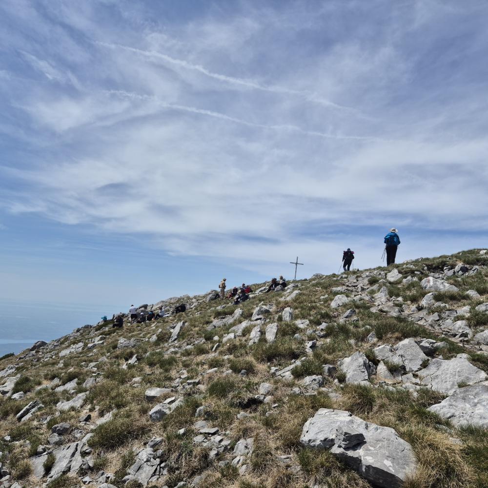 Na samom vrhu – osjećaj slobode i zadovoljstva. Pogled s 1751 metra visine ostavlja bez riječi: prema sjeveru pogled se pruža prema Vagancu i Sjevernom Velebitu, a prema jugu do Paklenice i zadarske obale, istočno naša ponosna Lika. Mnogi su zastali u tišini; u znak poštovanja dotakao se križ na vrhu, a svi smo osjetili onu posebnu planinarsku sreću koja dolazi samo na takvim mjestima.